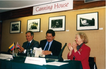 A Reception and talk is given by H.E. Guillermo Fernandez de Soto, Minister of Foreign Affairs of the Republic of Colombia. The event was chaired by Lord Montgomery.