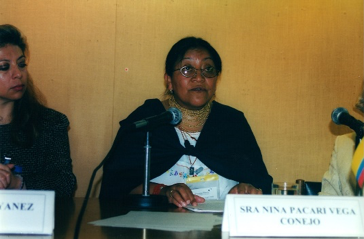 A talk is given by H.E. Sra Nina Pacari Vega Conejo, Second Vice-President of the Ecuadorian Congress and Leader of Pachakutic, the Ecuadorian Indigenous political party