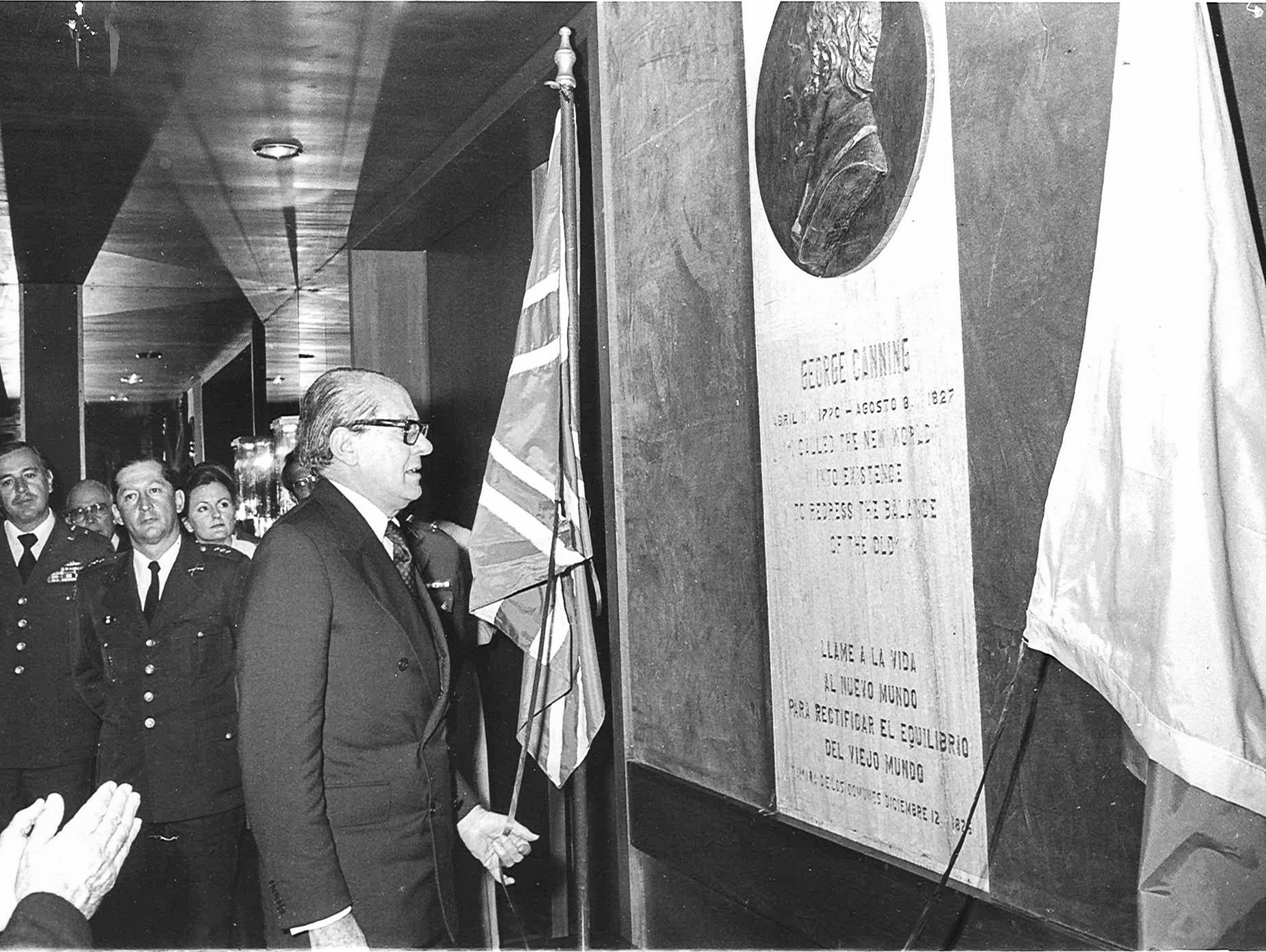 H.E. Alfonso López Michelsen, President of Colombia from 1974 to 1978, unveils Canning plaque in Bogotá