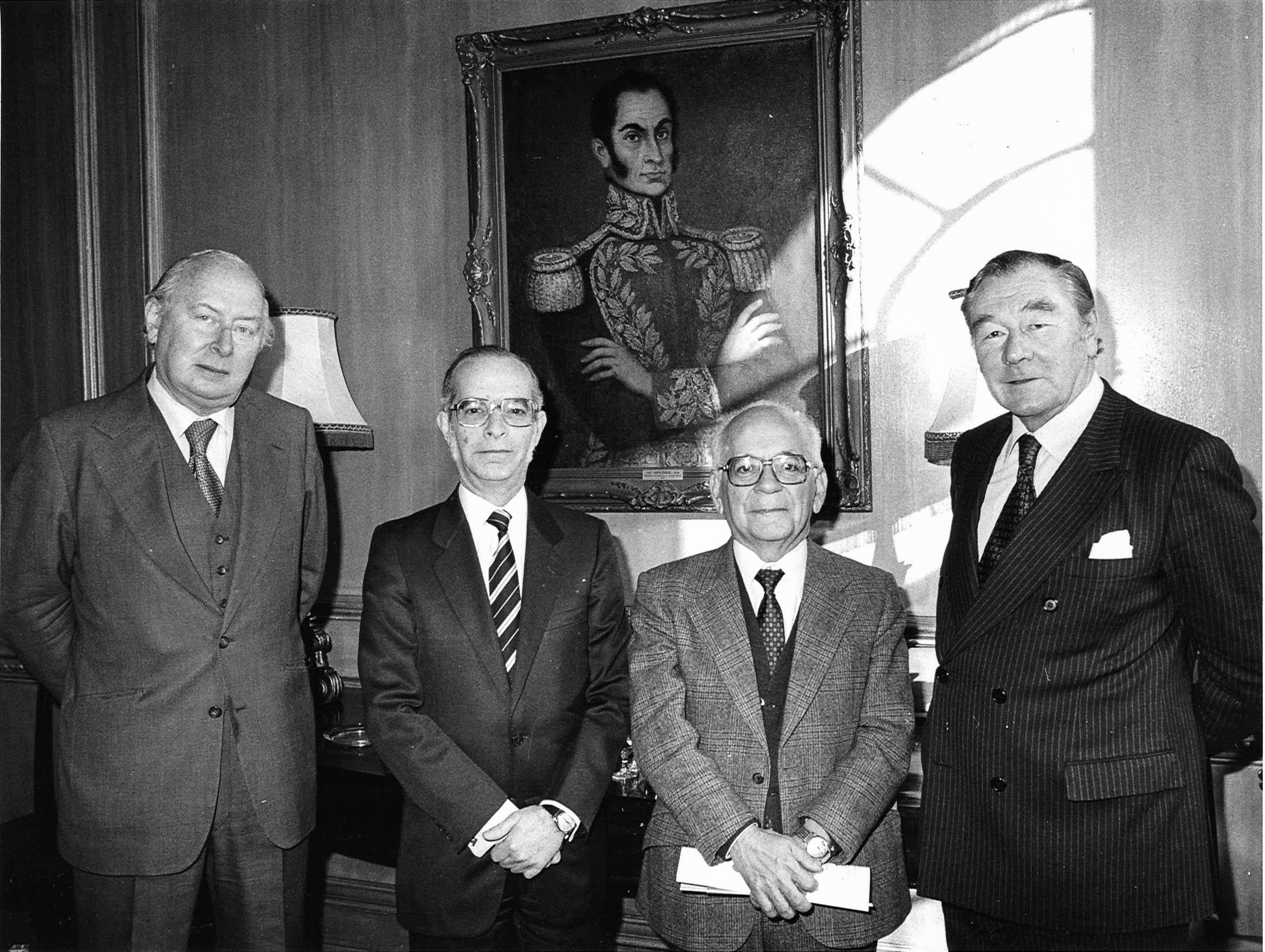 Directors General of Canning House Steven M. Mackenzie (R) and John Heath (L) with representatives from Venezuela, preparing for the Bolívar Bicentenary celebrations.